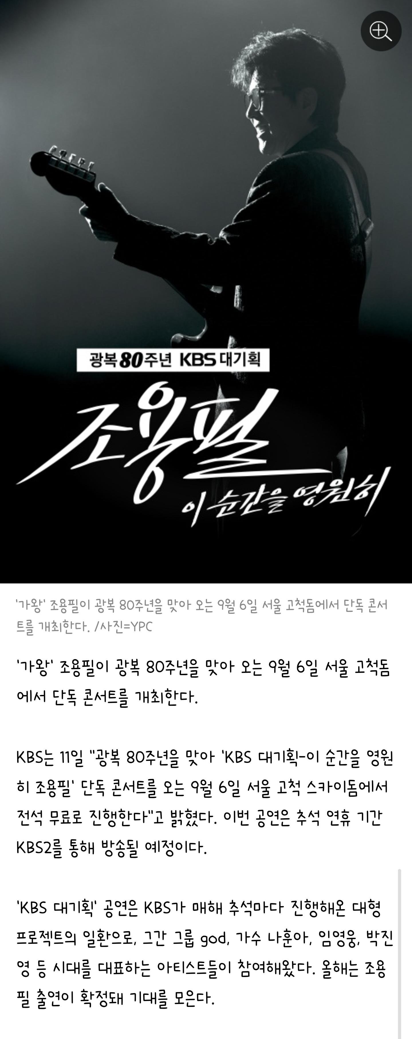 전설의 가수 조용필이 2025년 9월 6일, KBS 단독 콘서트로 팬들 앞에 돌아옵니다. 이번 공연은 광복 80주년을 기념하는 역사적인 무대일 뿐 아니라, 전석 100% 무료라는 점에서 더욱 특별합니다.